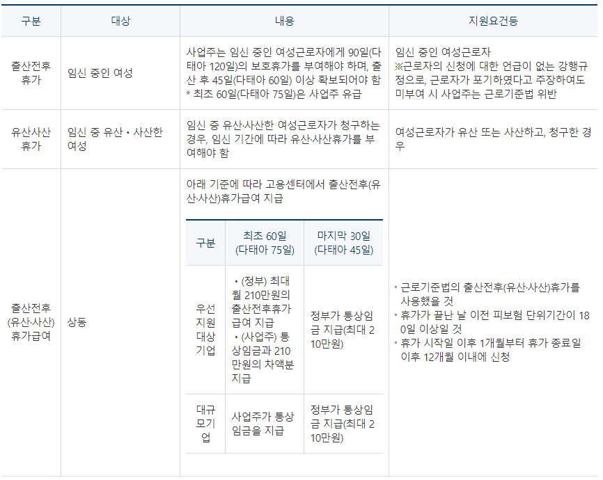 [출산전후휴가(유산ㆍ사산휴가 포함) 급여 지원]