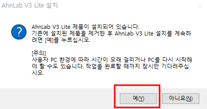 V3_Lite_Setup.exe 파일을 실행시킵니다.