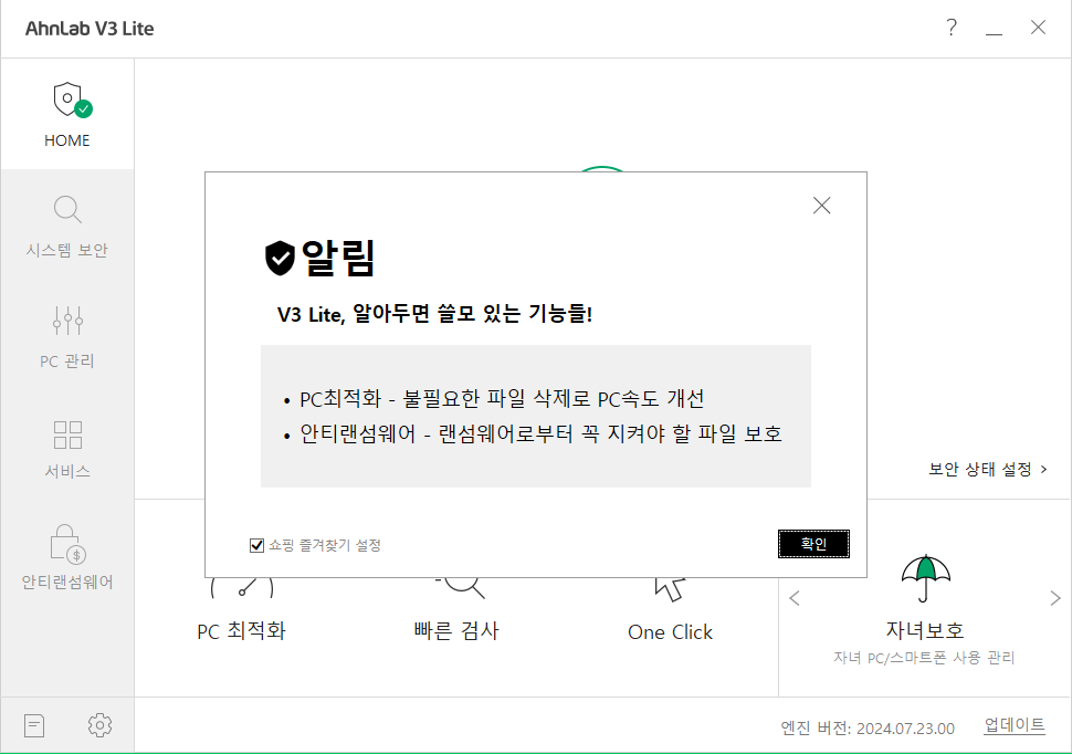 V3 Lite 무료 백신 다운로드