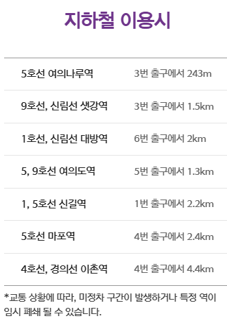 여의도 불꽃축제를 즐기기 위해 가장 편리한 방법은 대중교통 이용입니다. 축제 당일에는 관람객들의 편의를 위해 서울 지하철과 버스 노선이 강화됩니다. 특히, 지하철은 무정차 운행이 이루어져 혼잡을 줄이며, 버스 노선 역시 우회 운행을 통해 교통 체증을 완화할 예정입니다. 여의도로 향하는 26개의 버스가 집중 배치될 예정이니, 여의도로의 이동 시 대중교통을 이용하여 안전하고 편리하게 행사에 참여하시기 바랍니다.