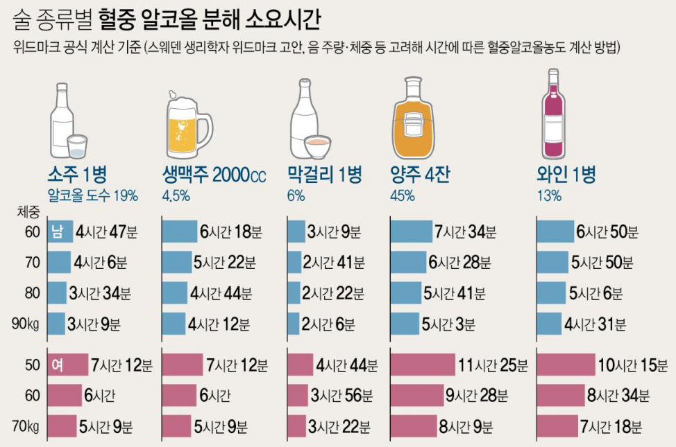 술은 우리 몸에 어떤 영향을 줄까? 알코올 분해 시간