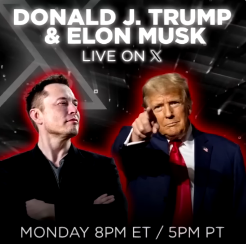 트럼프 머스크와의 대담으로 대선레이스에서 반전 시도, X를 통해 온라인 정치 실시