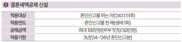 정부는 저출산 문제를 해결하기 위해 결혼 장려 인센티브도 도입할 예정입니다. 신혼부부에게는 1인당 50만 원씩, 최대 100만 원의 세액공제를 제공할 예정이며, 이는 올해 1월 1일 혼인신고분부터 소급 적용됩니다. 또한, 신혼부부 1세대 2주택자에 대한 세제 특례, 기업 출산지원금 전액 비과세 등의 조치도 포함됩니다.