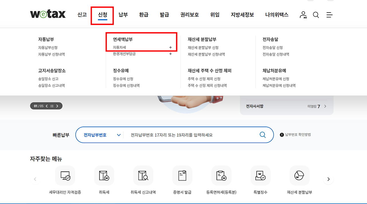 - 위택스(www.wetax.go.kr) 누리집 이용