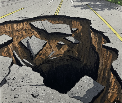 - 상수도·하수도관 파손 및 누수: 수도관이 파손되어 물이 지속적으로 새면 주변 흙이 씻겨나가면서 땅 속에 빈 공간이 만들어지고, 결국 지반이 무너집니다.