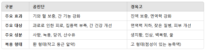 공진단과 경옥고의 차이점