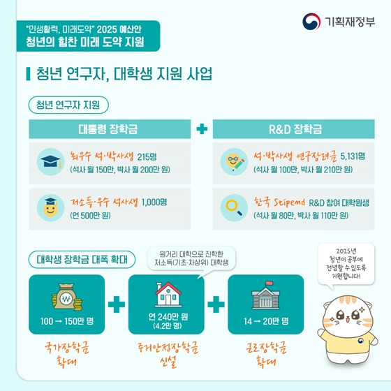 - 저소득·우수 석사생 1,000명: 연간 500만 원 지원