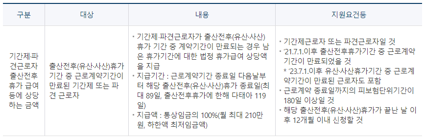 [출산전후휴가(유산ㆍ사산휴가 포함) 급여 지원]