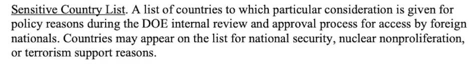 미국 에너지부 산하 정보방첩국이 관리하는 민감국가는 단계별로 구분되는데요,