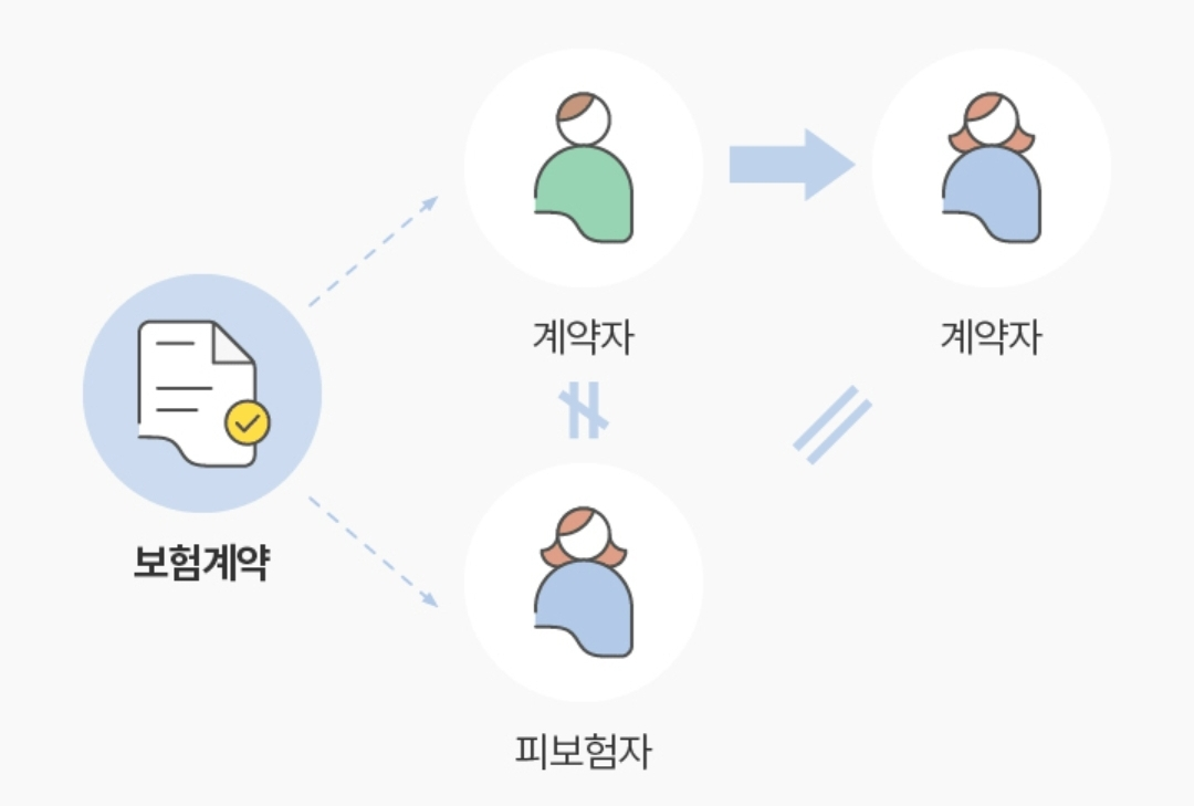 - 계약자와 피보험자가 다른 경우: 피보험자를 계약자로 변경이 가능합니다.(제3자를 계약자로 변경 불가)