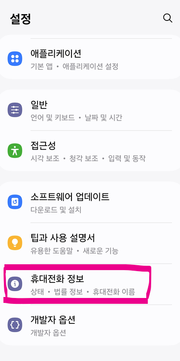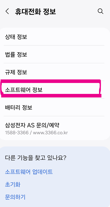 스마트폰의 설정 - 휴대전화 정보 - 소프트웨어 정보에서