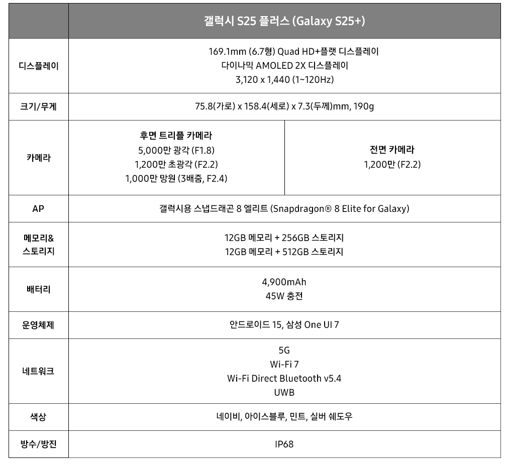 - 갤럭시S25 플러스 : 135만원