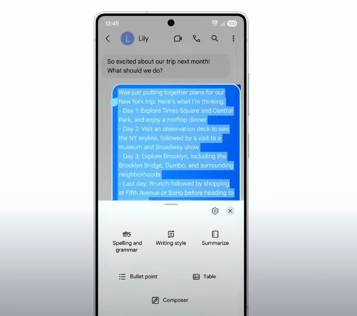 - 글쓰기 어시스트(Writing Assist): 텍스트 요약, 맞춤법 검사 등 생성형 AI 기반의 텍스트 편집 기능을 통합하여 어디서든 쉽게 텍스트를 편집할 수 있습니다.