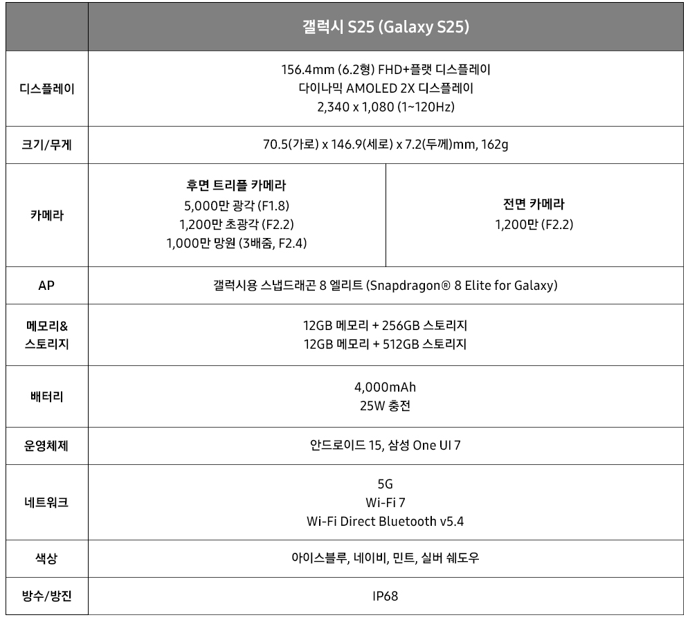 - 갤럭시S25 : 115만원