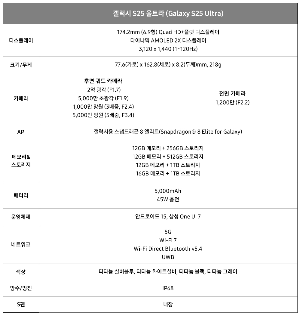 스냅 8 엘리트가 모두 탑재된 갤럭시 S25 시리즈 언팩, 가격은?