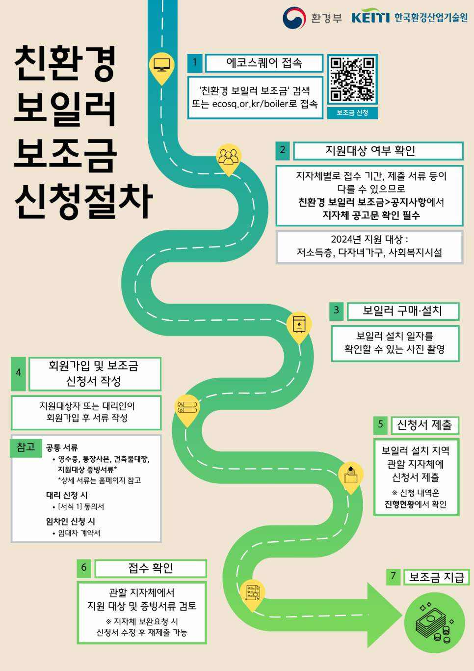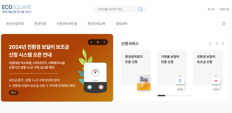 - '에코스퀘어' → [환경인증] → [친환경 보일러 보조금]→ 지원 대상 '대상제품조회'