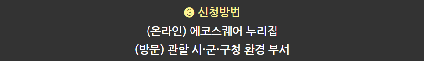 - 보조금 신청 및 서류 제출: 온라인(에코스퀘어) 또는 방문(관할 시·군·구청)으로 신청.