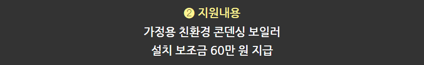 - 보일러 설치: 친환경 콘덴싱 보일러를 구매 및 설치(설치 사진 및 구매 영수증 필요).