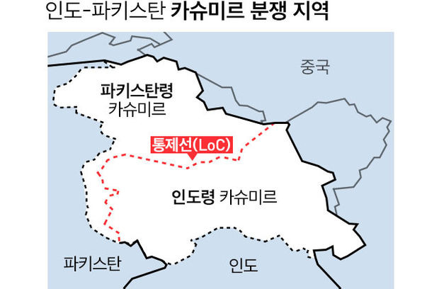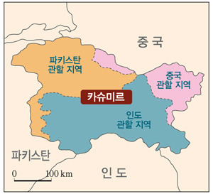 카슈미르는 인도, 파키스탄, 중국 세 나라가 맞닿은 전략적 요충지입니다.