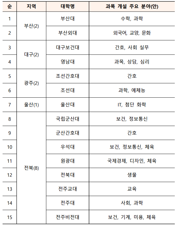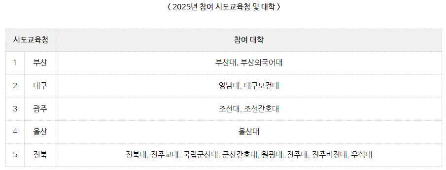 2025년에는 5개 시도교육청 관내 15개 대학에서 시범적으로 시행됩니다.