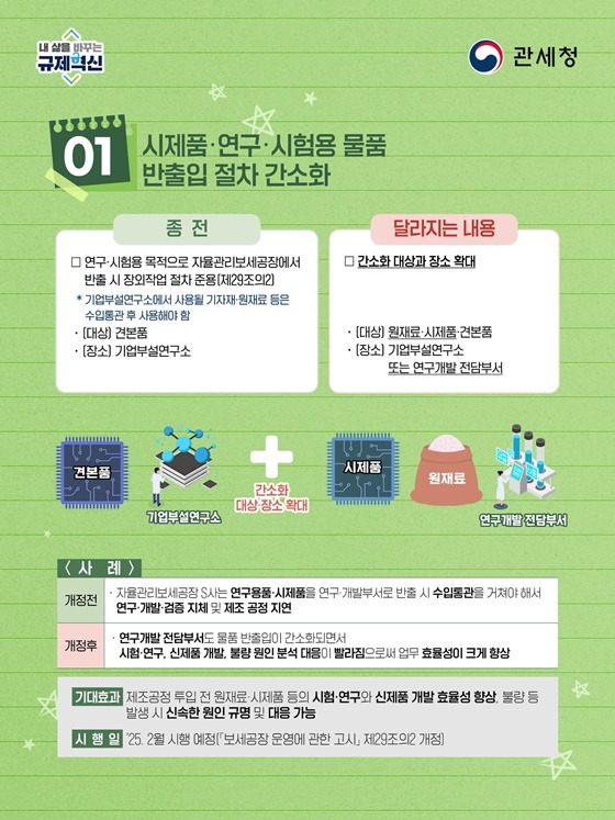 - 대상 확대: 원재료, 시제품, 견본품 모두 간소화 대상에 포함.
