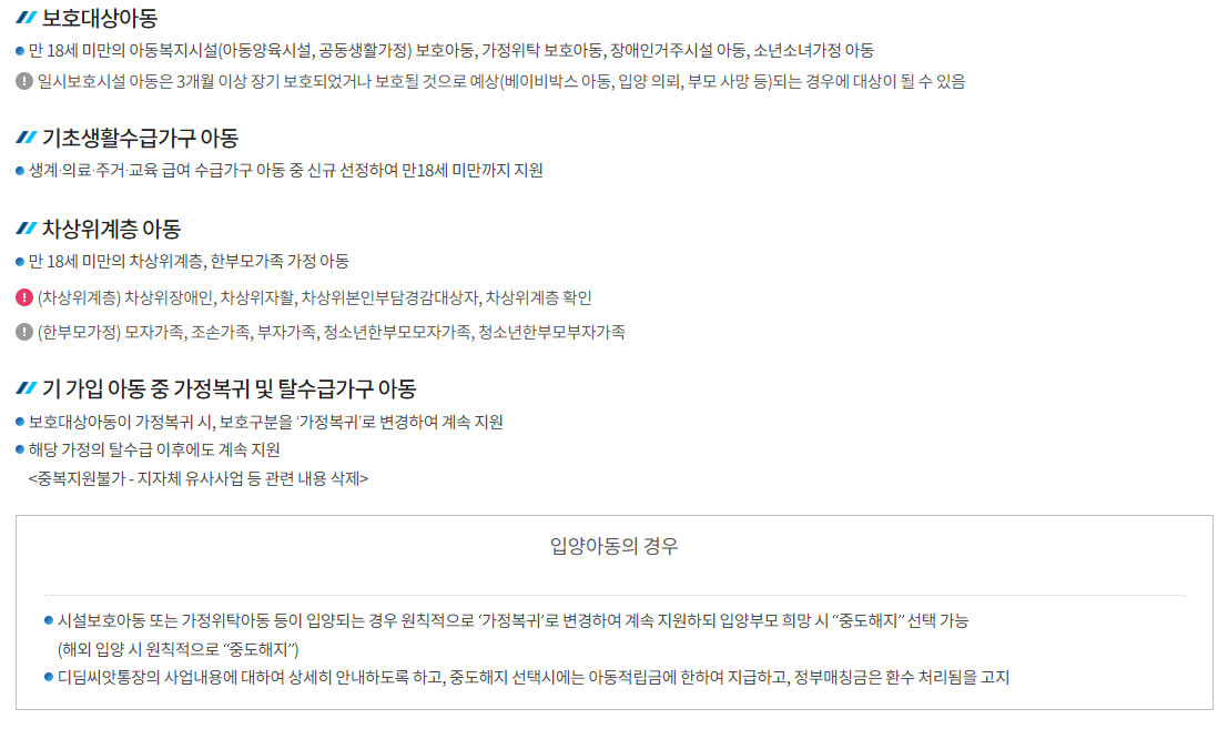 이 프로그램은 아동의 미래 자산 형성을 돕는 데 중점을 두고 있어, 교육비나 취업 준비 자금 등 다양한 용도로 활용할 수 있습니다.