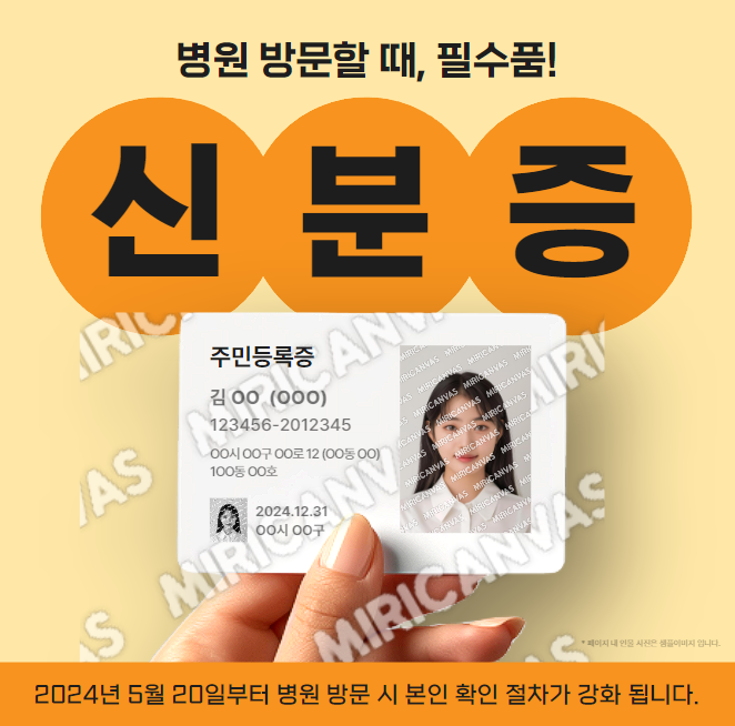 - 건강보험증 제시: 본인 확인이 어려울 경우 보조적인 방법으로 사용 가능합니다. (단, 건강보험증만으로는 본인 확인이 불가능하며, 다른 신분증과 함께 제시해야 합니다.)