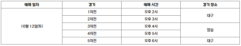 - 플레이오프 입장권 예매: 10월 12일 오후 2시부터 진행